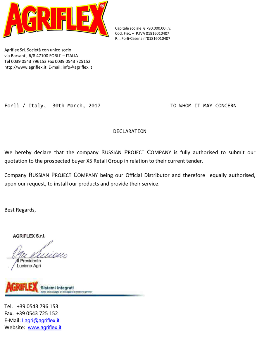 «Русский Проект» ® - Официальный дилер AGRIFLEX на территории России и стран СНГ