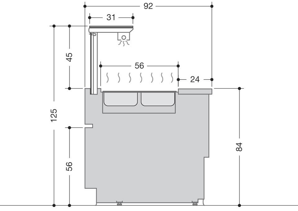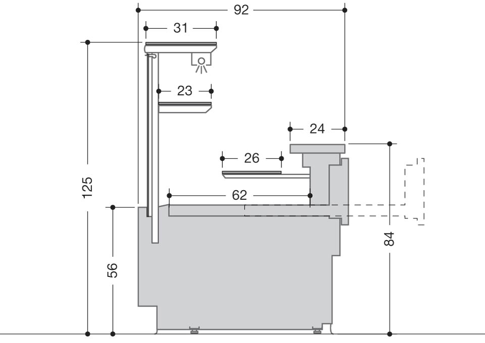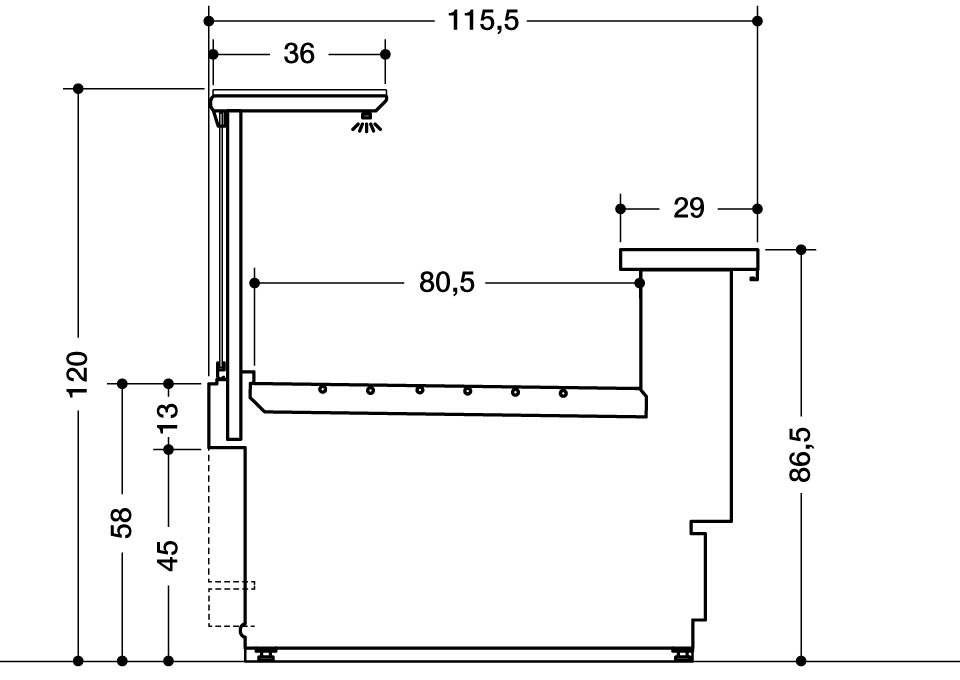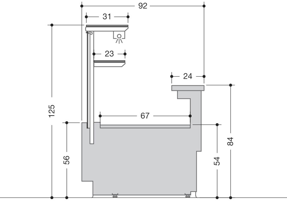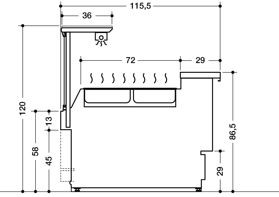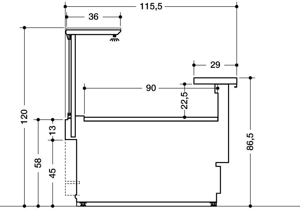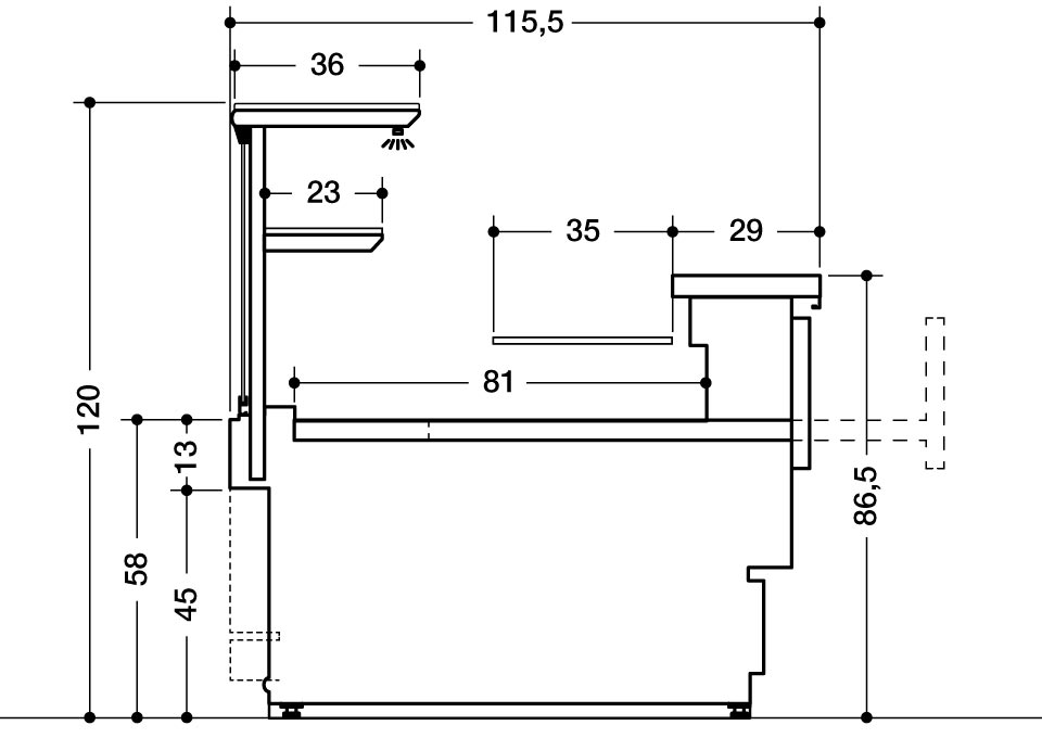 Современный дизайн прилавка ENIXE отличается лаконичностью формы и строгостью линий. Прямые вертикальные стекла и горизонтальная стеклянная полка отпуска обеспечивают максимальную обзорность продуктов. Фронтальные стекла поднимаются вверх и фиксируются при помощи гидролифтов.