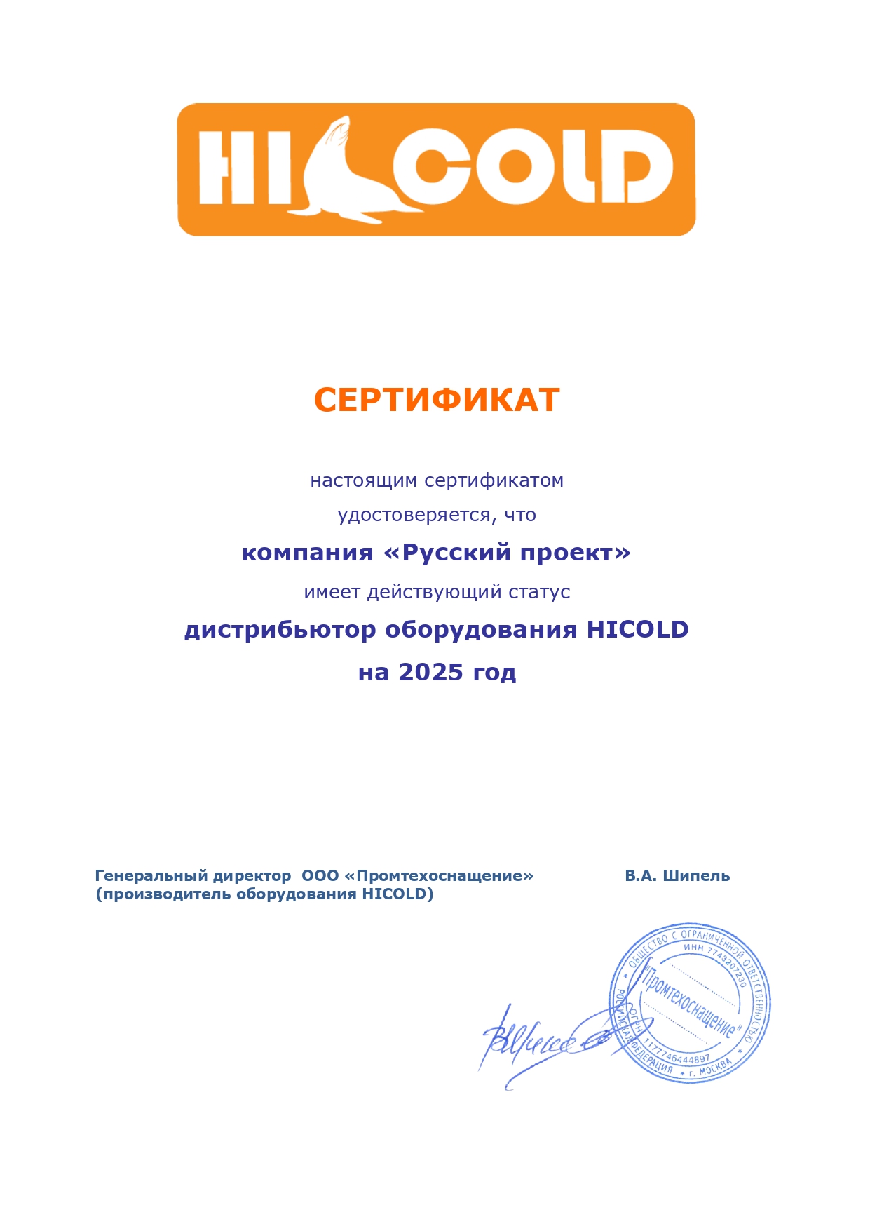 предприятия общественного питания. Наличие соответствующих сертификатов подтверждает, что продукция HICOLD