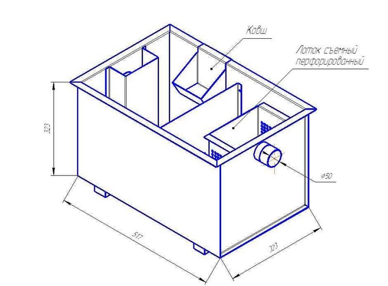 - Отверстие для сбора отходов D = 180мм, объемный борт, объвязка по 3-м сторонам