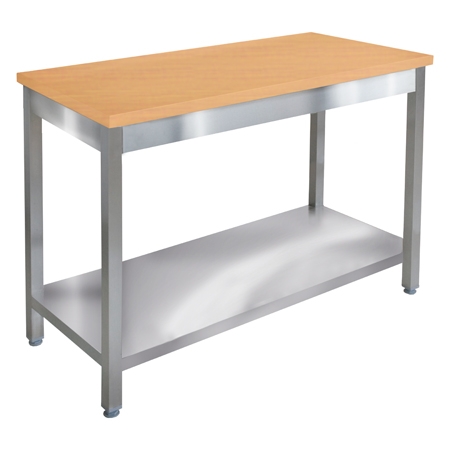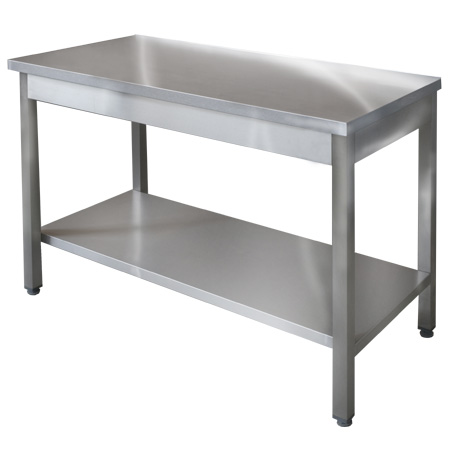 - Столешница и полка выполнены из нержавеющей стали. Столешница усилена двойной ламинированной ДСП