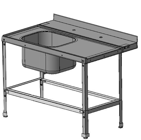 стол пристенный с ванной моечной и полкой | стол пристенный с ванной моечной и обвязкой по 3-м сторонам | |