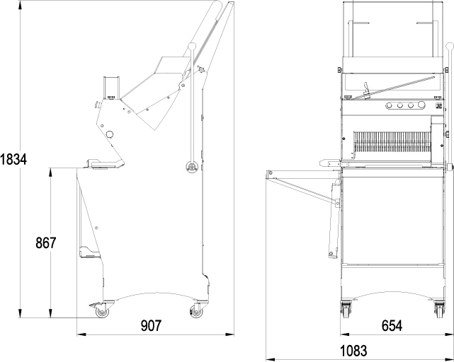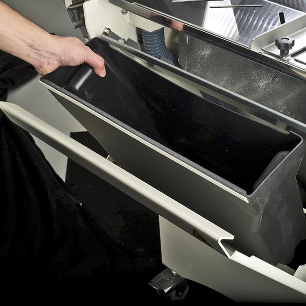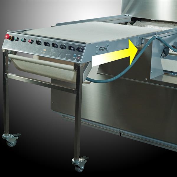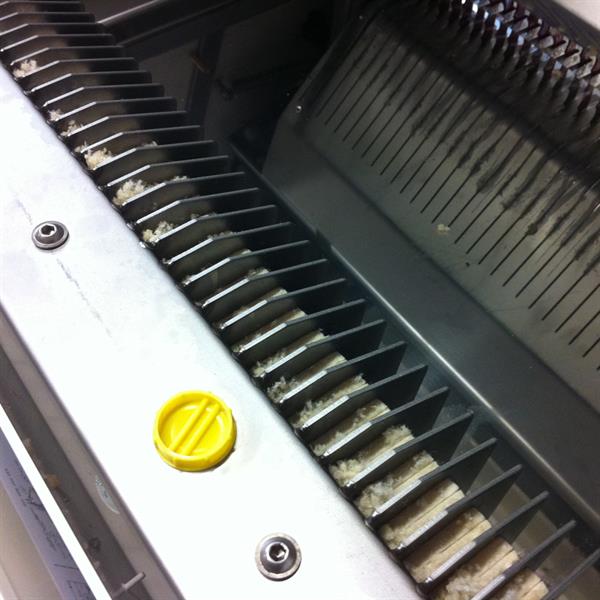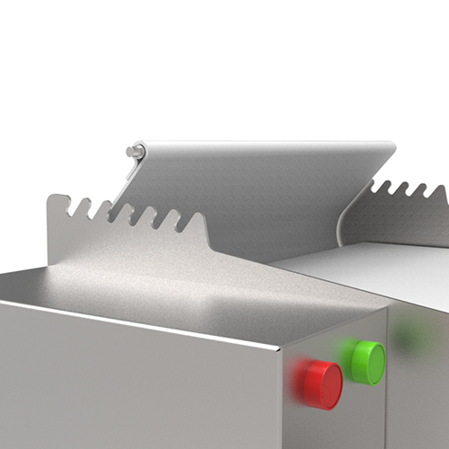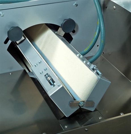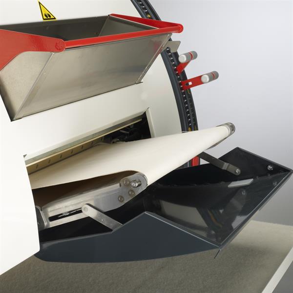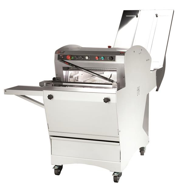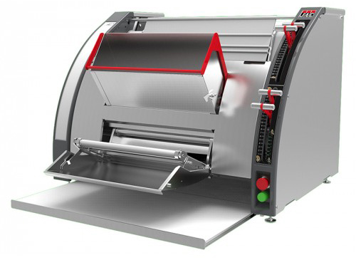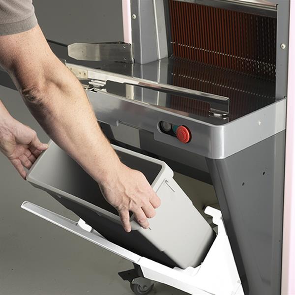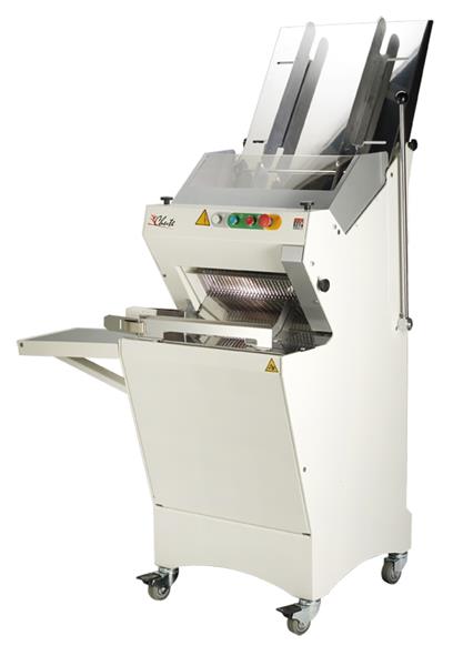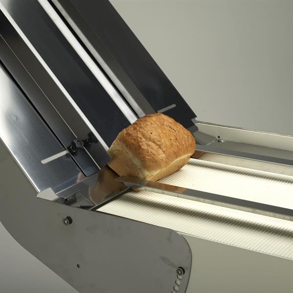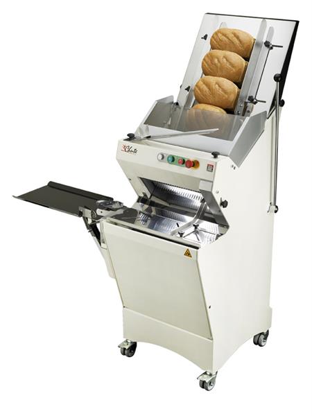 CHUTE - это уникальная по своим концептуальным характеристикам машина используется для непрерывной нарезки тостового (бескоркового) хлеба. Позволяет последовательно загрузить от 5 до 7 буханок одинакового размера и безостановочно их порезать. Принцип ее действия основан на использовании силы тяжести (подача к ножам за счет веса хлеба), с этой целью на загрузочный конвейер помещается одновременно несколько одинаковых буханок ( вместимость: от 5 до 7 штук). Хлеборезка CHUTE доступна в версии c шириной рамки в 45 см. Выделяется наличием эргономичного резервуара для сбора крошек; для увеличения продуктивности дополнительно может быть укомплектована воздуходувкой для открывания пакетов.