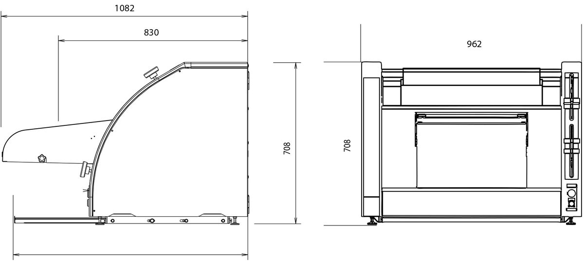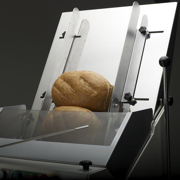 - Селектор давления позволяет выбирать при резке степень нажима толкателя хлеба (опция). Технология ISC.