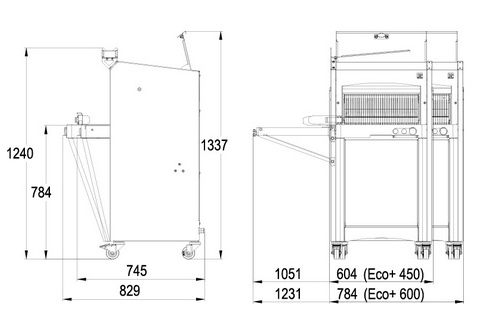 Модель ECO+ обладает теми же техническими характеристиками, что и хлеборез FACE+. Кроме того, эта модель может быть оснащена (в зависимости от заказа) устройством для раздува пакетов, что значительно облегчает упаковку хлеба. Хлеборез ECO+ эргономичен, прост в эксплуатации, обладает идеальной резкой.