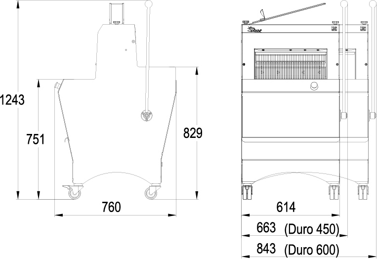 Полуавтоматическая модель Duro оснащена приводящим рычагом. Горизонтальная плоскость нарезки хлебореза обеспечивает непревзойденную универсальность. Машина доступна в двух версиях: c шириной рамки в 45 и 60 см. Duro 600 предполагает в качестве опции «двойную толщину нарезки» - устанавливаются 2 рамки ножей по 30см, каждая рамка имеет различную толщину нарезки. Duro 450M предлагается в исполнении со смазкой ножей для хлеба с клейким мякишем. Модели доступны в различных цветовых оттенках.