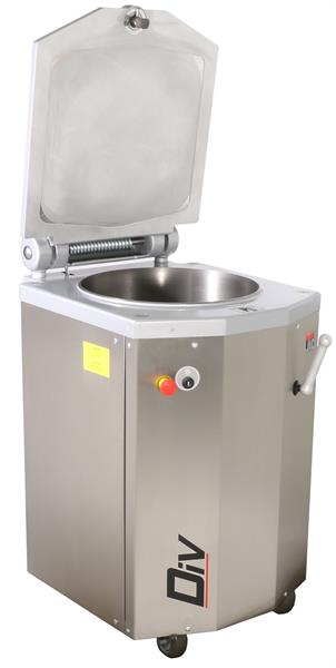 Div и Div-R представляют собой классические гидравлические делители теста. Как прямоугольной формы кюветы (резервуар из нержавеющей стали), так и круглой, они позволяют разделить ваше тесто на 20 порций весом от 150 до 950 гр (для прямоугольной версии), от 100 до 900 гр (для круглой формы). Для прямоугольной версии доступна опция 10/20, которая позволяет получить 10 больших тестозаготовок максимальным весом 1800-1900 гр. Модель DIV-R имеет функцию регулировки давления, которая позволяет приспособиться к тесту с чрезвычайно низким или же наоборот, c крайне высоким содержанием воды, что наилучшим образом обеспечивает оптимальное обращение с вашим тестом. Также обладает системой для сбора частичек муки, что позволяет предложить вам лучшие условия для работы.