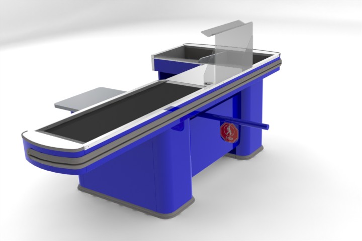 При нажатии на педаль транспортер начинает двигаться. Для сканирования покупки кассир отпускает педаль, лента останавливается.