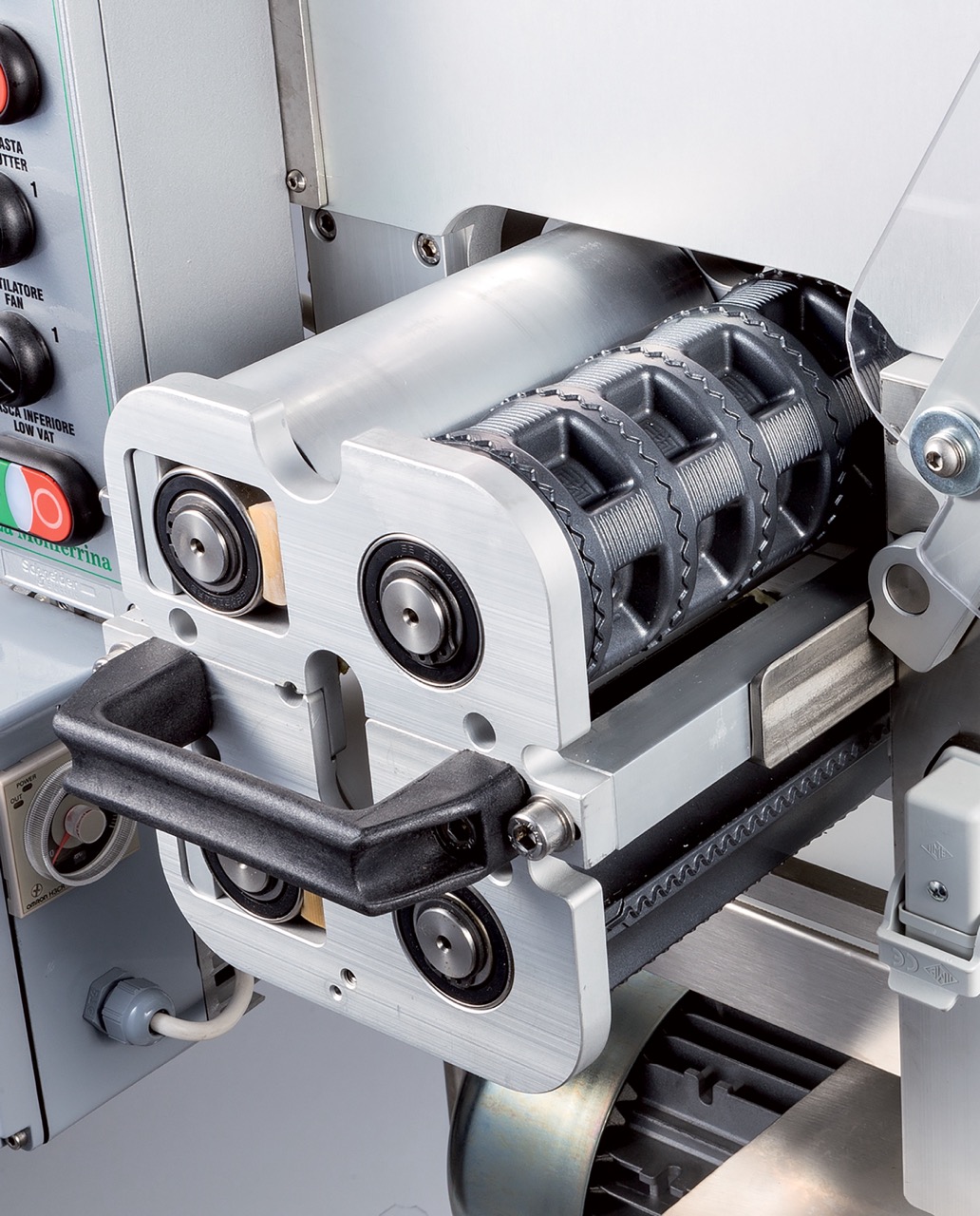 1. Насадка для лапши. Данный узел раскатывает и режет лапшу различной шириной меняя штамп.