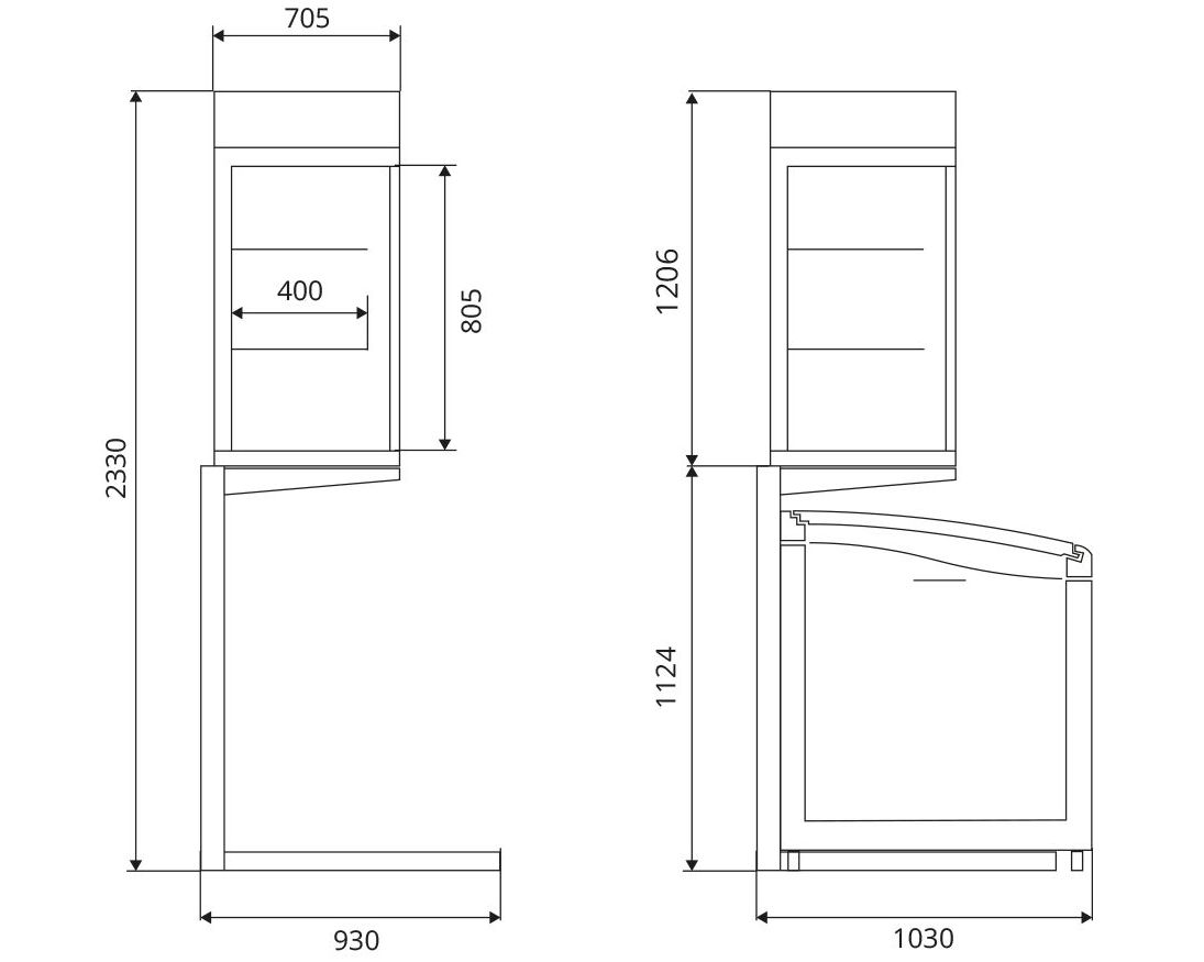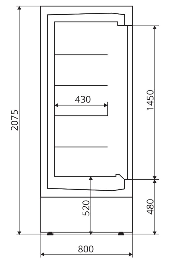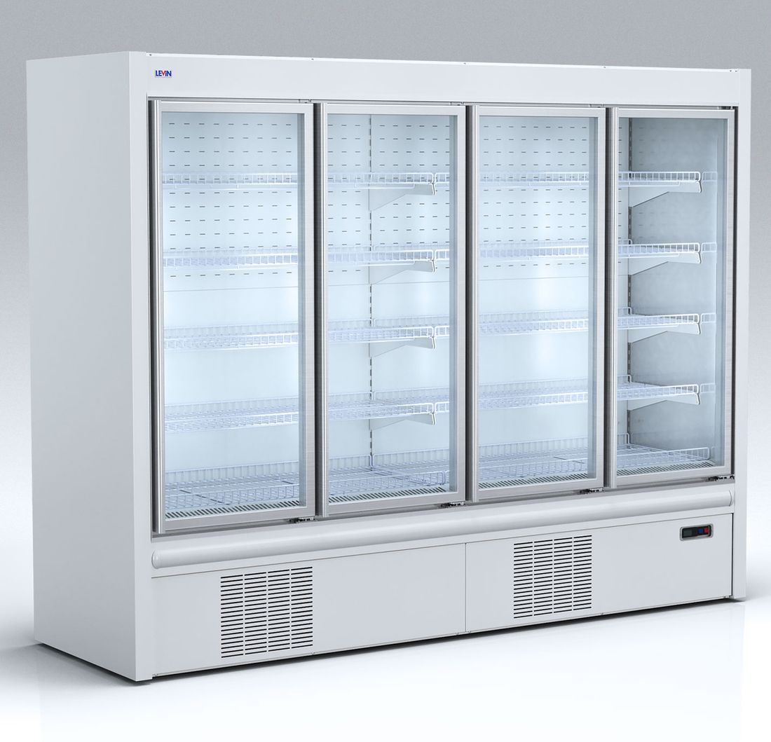 Модель имеет пять полноценных уровней выкладки товара — базовую полку и четыре ряда регулируемых по высоте навесных полок, а также распашные обзорные двери, собранные на основе стеклопакета с низкоэмиссионным внешним стеклом и внутренним стеклом с антизапотевающим покрытием.