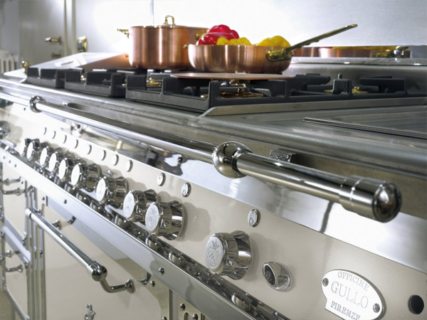 Варочные поверхности, духовки и другие элементы коллекции Officine Gullo могут быть реализованы как на газу, так и электричестве, однофазном или трехфазном.