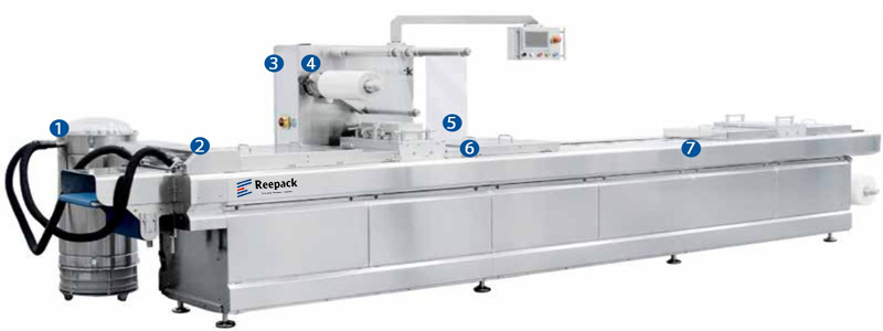 Продуманная конструкция термоформеров Reepack ReeForm обеспечивает защиту рабочих механизмов оборудования и вместе с этим доступ для обслуживания его узлов, санитарной обработки. Понятный интерфейс дисплея позволяет пользователю установить требуемые параметры без лишних усилий. Широк перечень конфигураций машины: подбор термоформера и его оснащение осуществляется исключительно под конкретную производственную задачу с учетом всех нюансов.