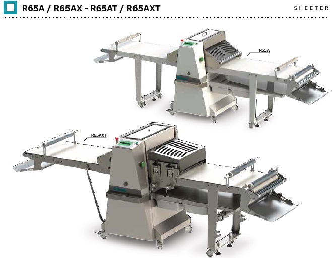 Компактные тестораскатки нового поколения серии R50 и R55 с шириной ленты всего 500 и 550мм соответственно. Настольные и напольные версии. Разработаны в соответствии с последними регламентами безопасности CEE (EN1674). Регулировка натяжения полотна осуществляется спереди. Замена ленты и уборка стола очень просты, столы съемные.