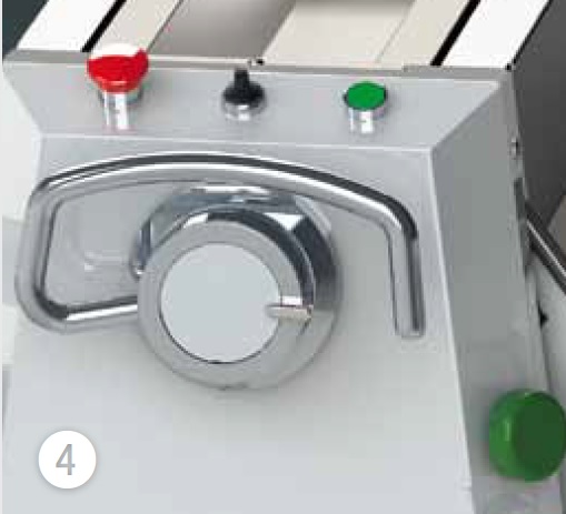 • MR52 загружается сзади, может нарезать хлеб толщиной от 25 до 180 мм, высотой до 520 мм с номинальной шириной.