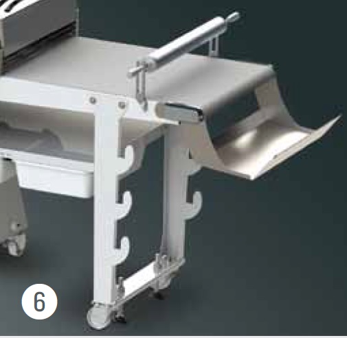 • По заказу: фронтальный стол для опоры, механизм выдувки для открывания пакета при упаковке продукта, моторизованная соединительная лента, система смазывания, фотоэлемент для временной остановки нарезания, гравитационная погрузочная рампа. Кроме того, имеется тележка для дополнительных рам.