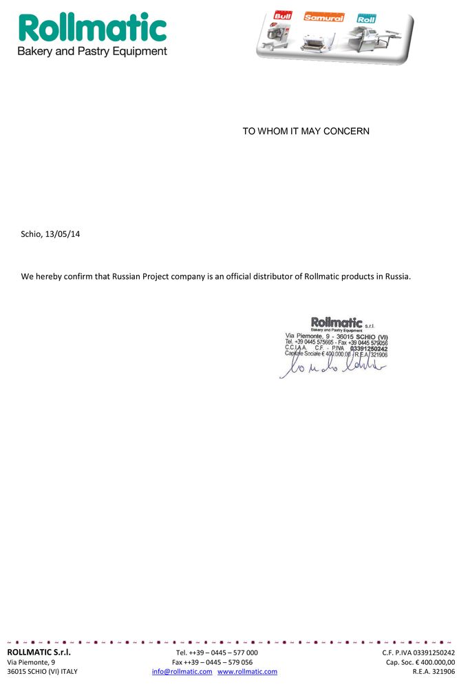 «Русский Проект» ® - Официальный дистрибьютор ROLLMATIC на территории России