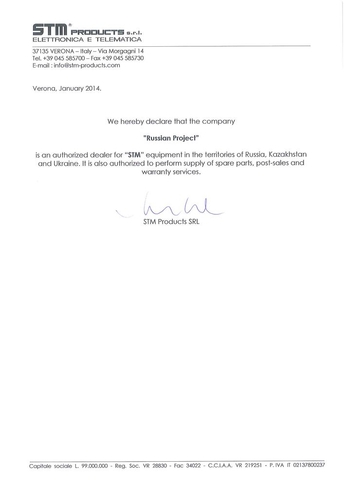 Компания STM (Италия) была основана в 1983 году в городе Верона. Деятельность фирмы распространяется на исследования, аппаратное обеспечение, программное обеспечение, программирование и разработку. Фирма STM Products S.r.l. (Италия) производит промышленную электронику, занимаясь всеми этапами производства от разработок до сборки как серийно, так и под заказы. Продукция экспортируется в более чем 60 стран.