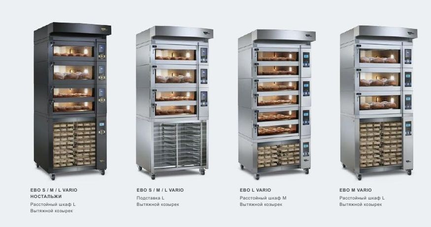 - Печи без пароувлажнения, парогенератор — опция (выписывается отдельно)