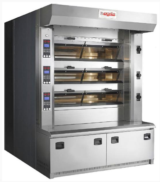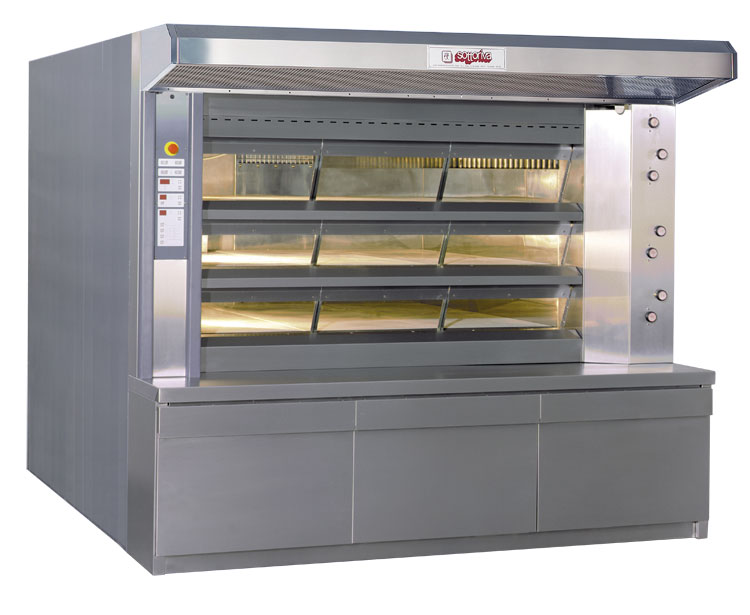 Электрические ярусные печи с независимой регулировкой температуры в каждой камере и управлением общего процентного отношения нагрева для верха и низа камеры. Может иметь 3 или 4 яруса. Высота верхнего яруса составляет 230мм, высота остальных ярусов 180мм. В зависимости от площади, каждый ярус может быть на одну дверцу 800мм или две дверцы 600мм. Печь соответствует самым высоким пекарским требованиям и отличается наилучшим соотношением между площадью выпечки, мощностью и стоимостью.