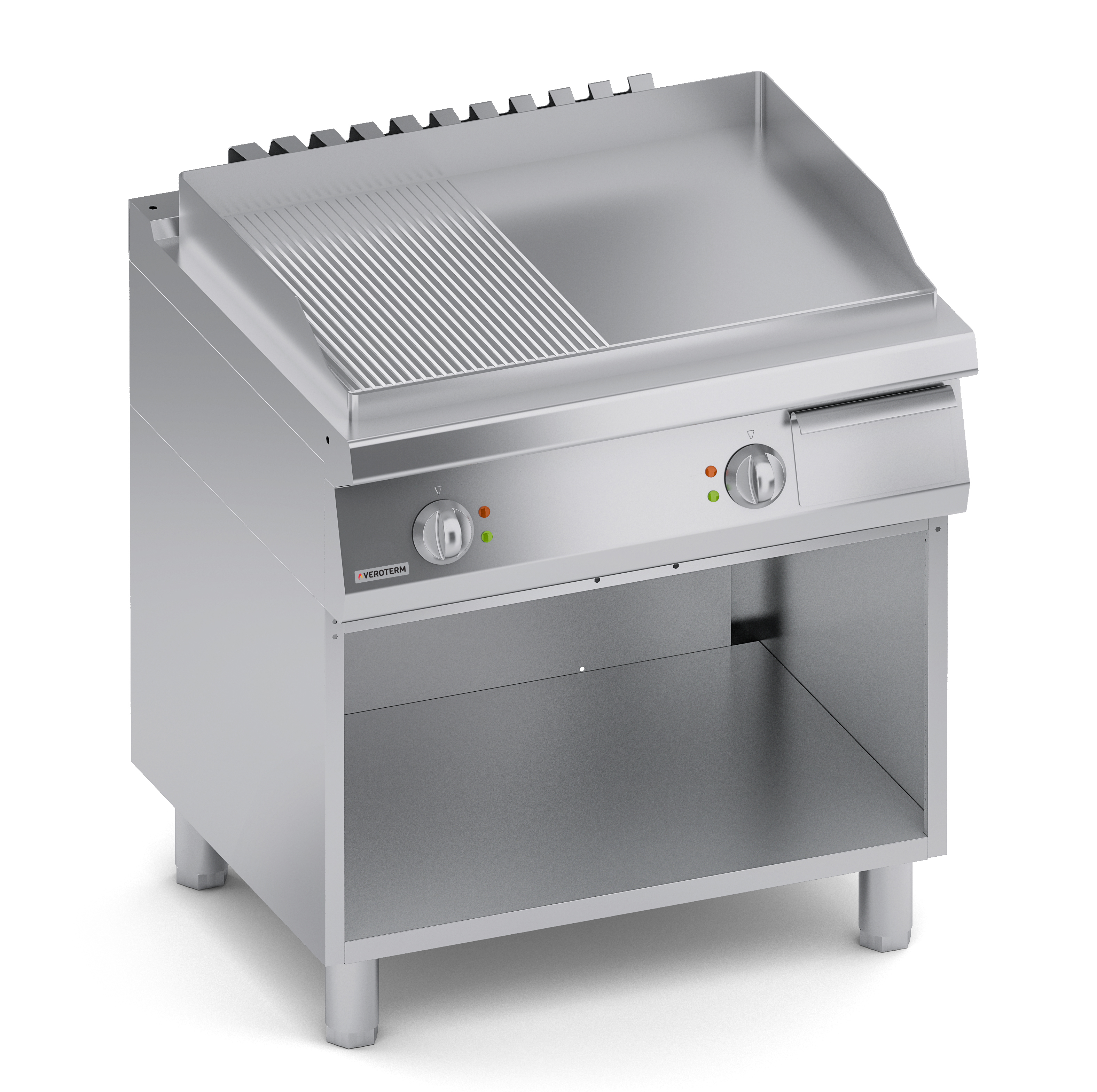 Жарочные поверхности используется как в ресторанах, так и в заведениях быстрого питания для приготовления рыбы, мяса, овощей, яиц, бургеров. В ассортименте Veroterm жарочные поверхности представлены в сериях 600, 700 и 900 в настольных и напольных вариантах с гладкой, ребристой и комбинированной поверхностью из стали.