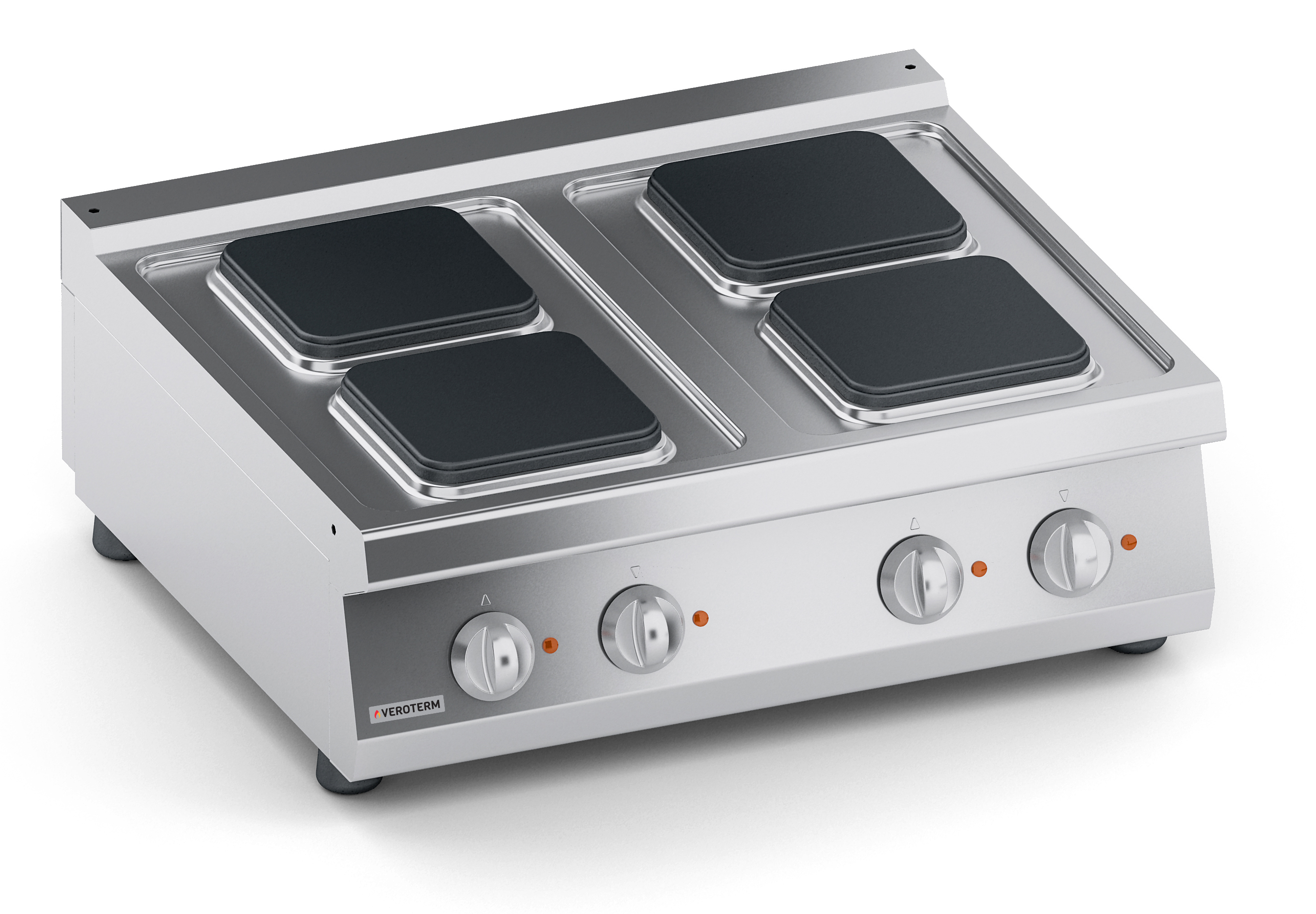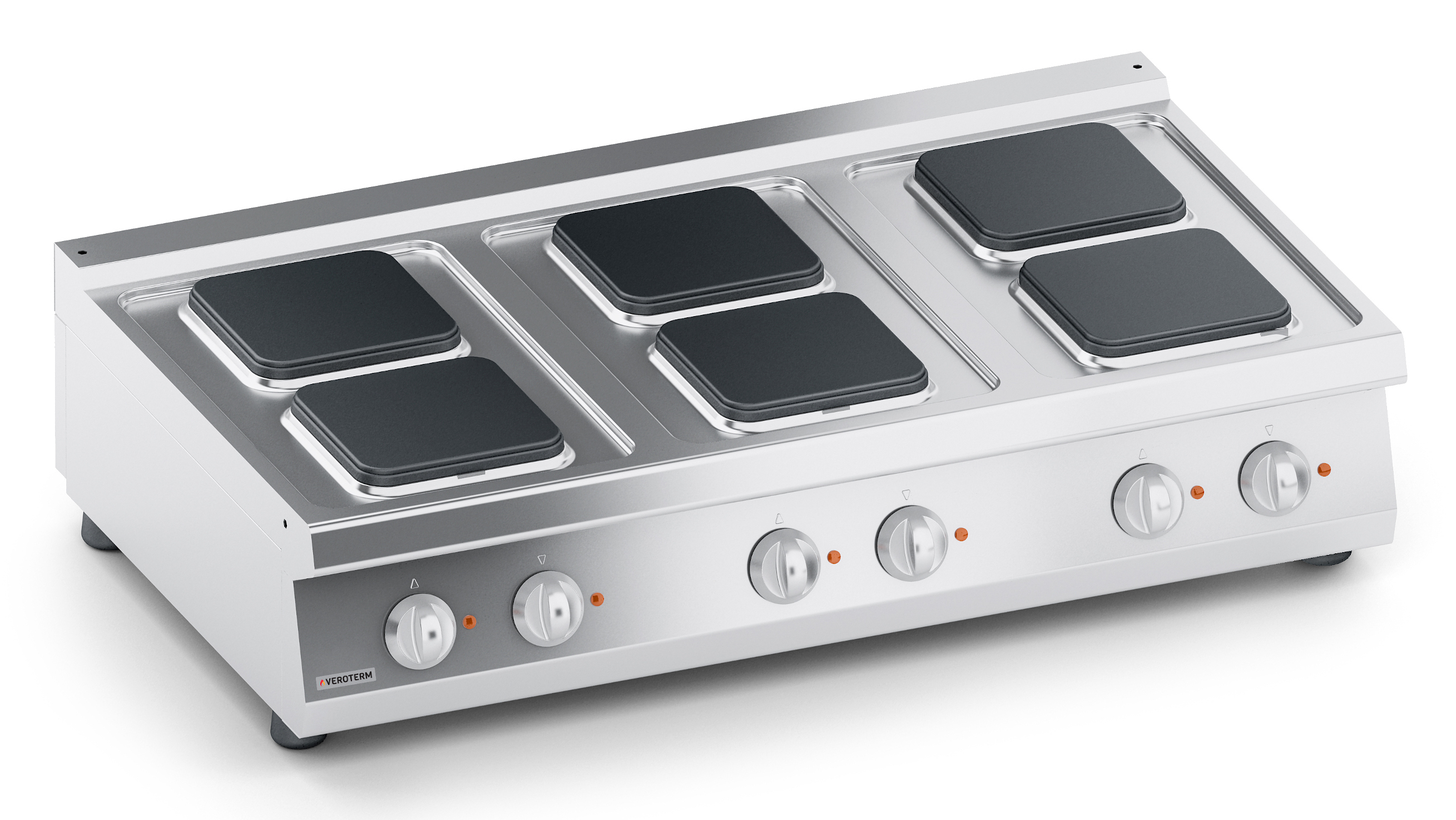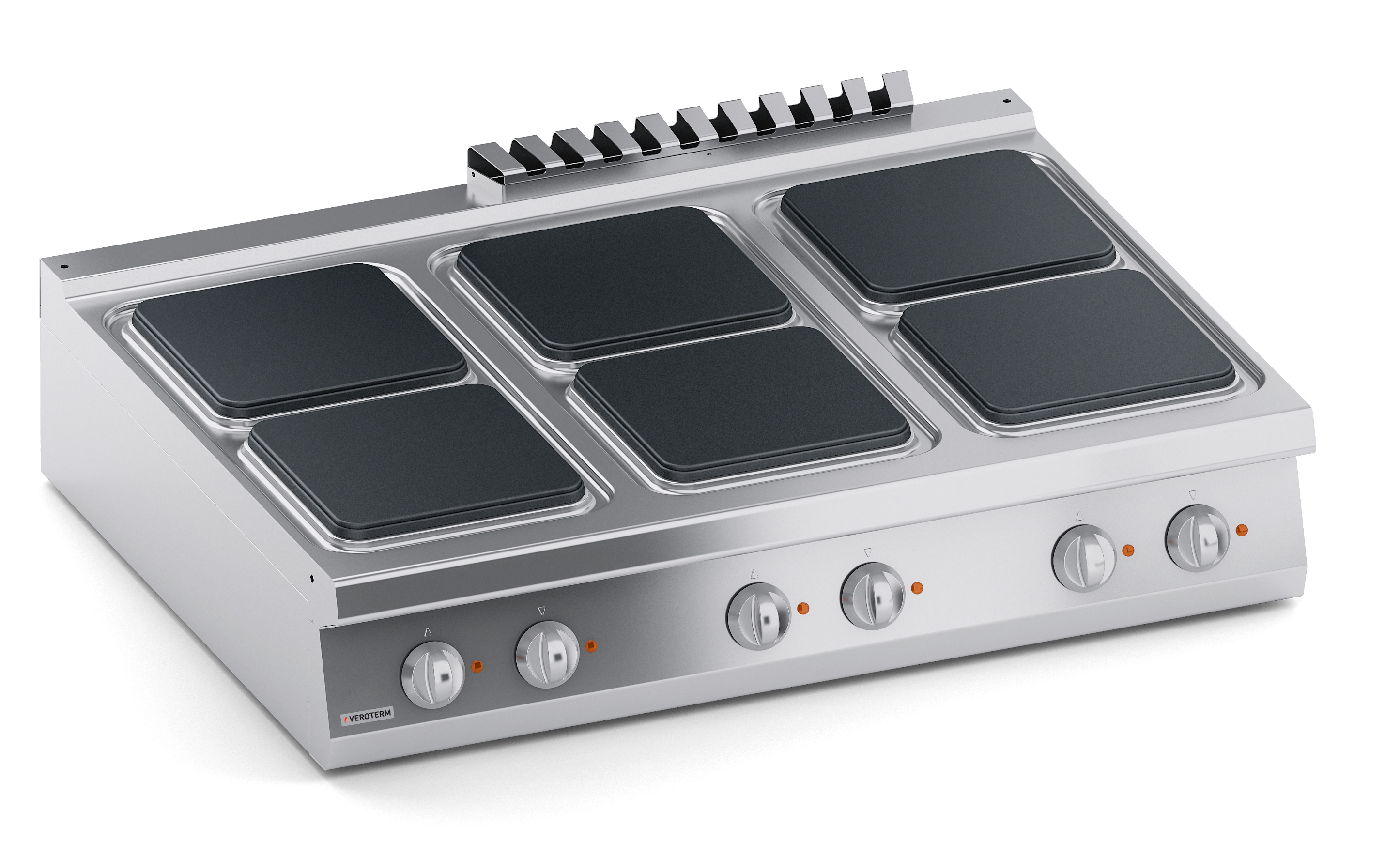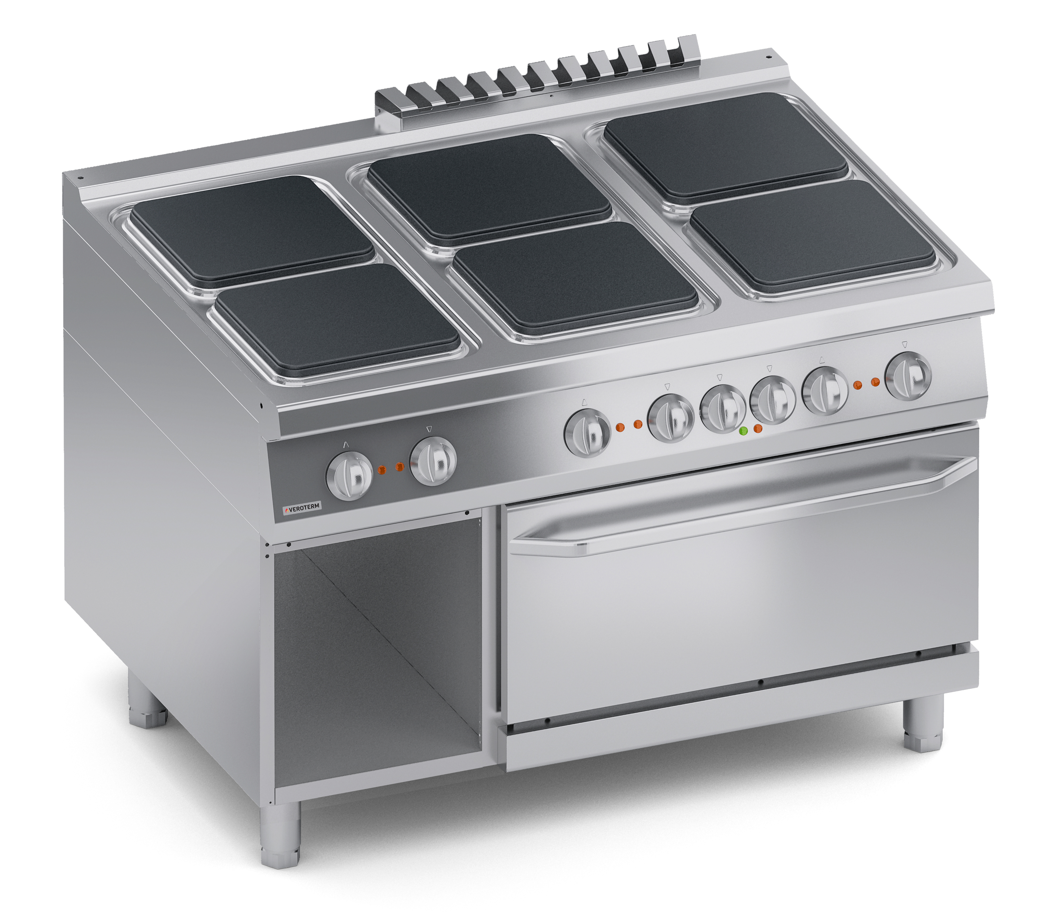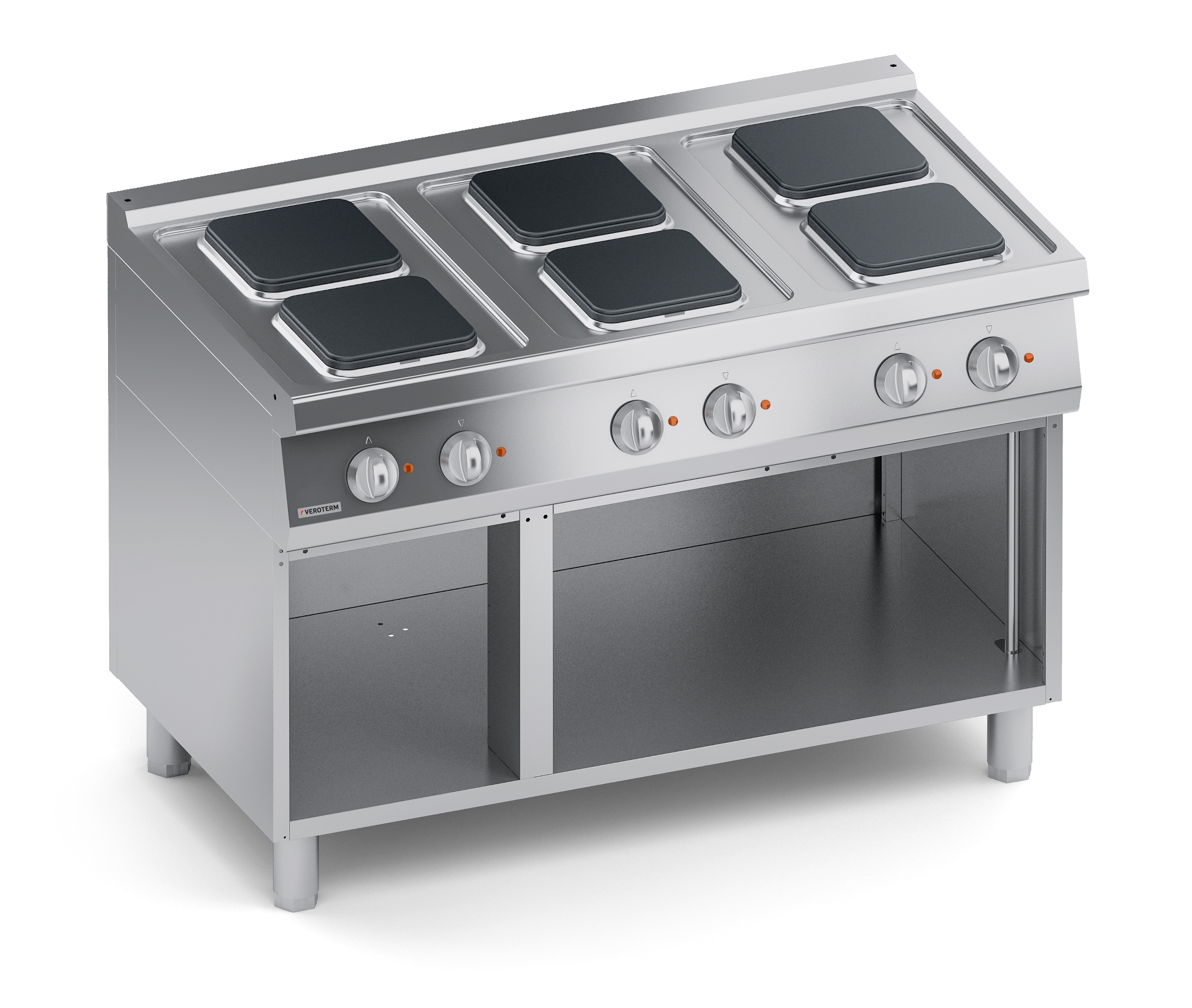 Тепловое оборудование:Ассортимент Veroterm включает в себя оборудование 600, 700 и 900 серий, что дает широкий диапазон возможностей для оснащения профессиональных кухонь от маленьких заведений с простым меню до больших ресторанов, гостиниц и столовых, рассчитанных на обслуживание большого количества посетителей с разнообразным и сложным меню. Плиты VerotermИтальянский бренд Veroterm предлагает широкий ассортимент электрических, газовых и индукционных плит, выполненных из нержавеющей стали, в настольных версиях, на нейтральных подставках и с духовыми шкафами. Плиты представлены в 600, 700 и 900 сериях, со сплошными, секционными квадратными или круглыми конфорками.