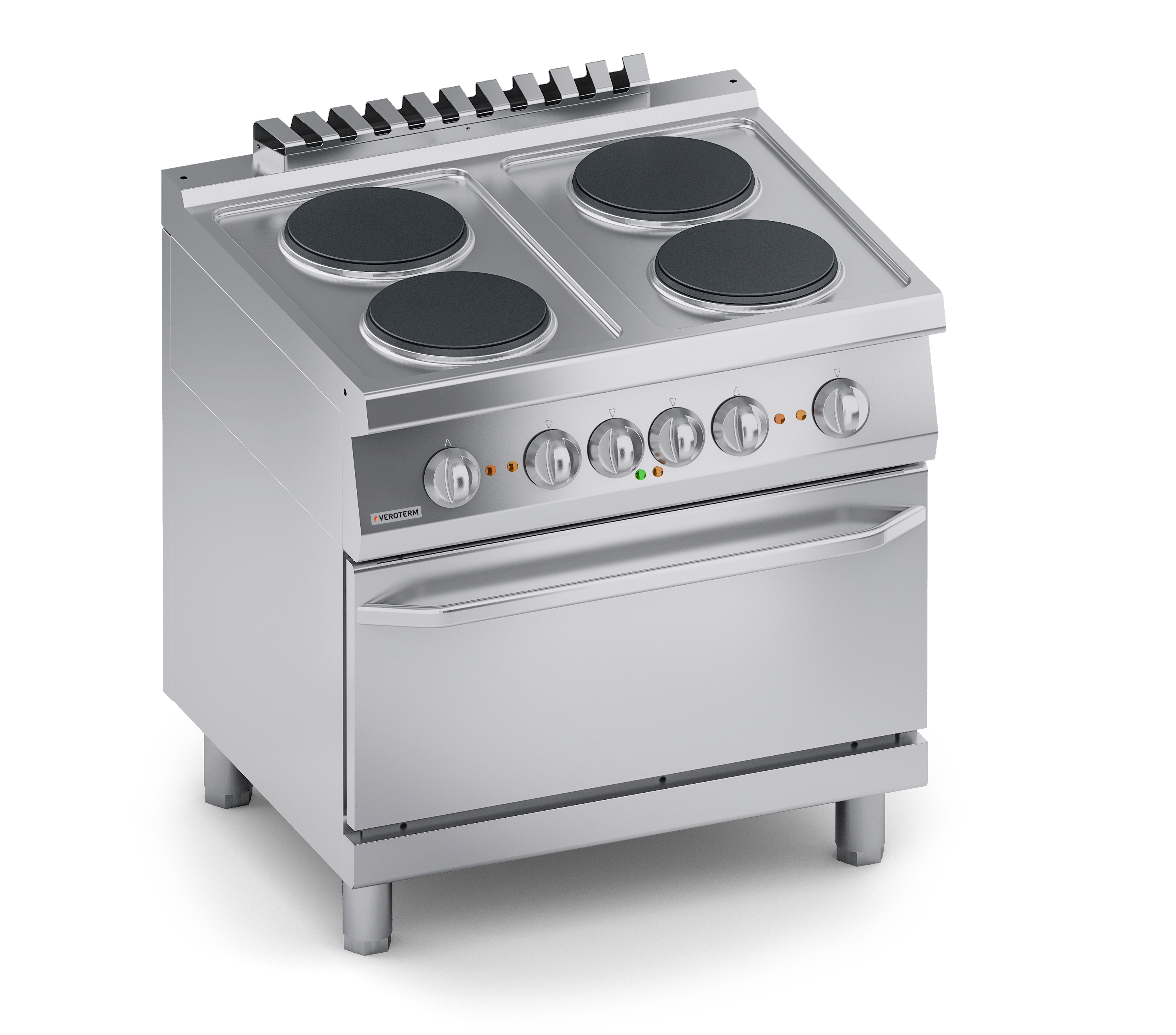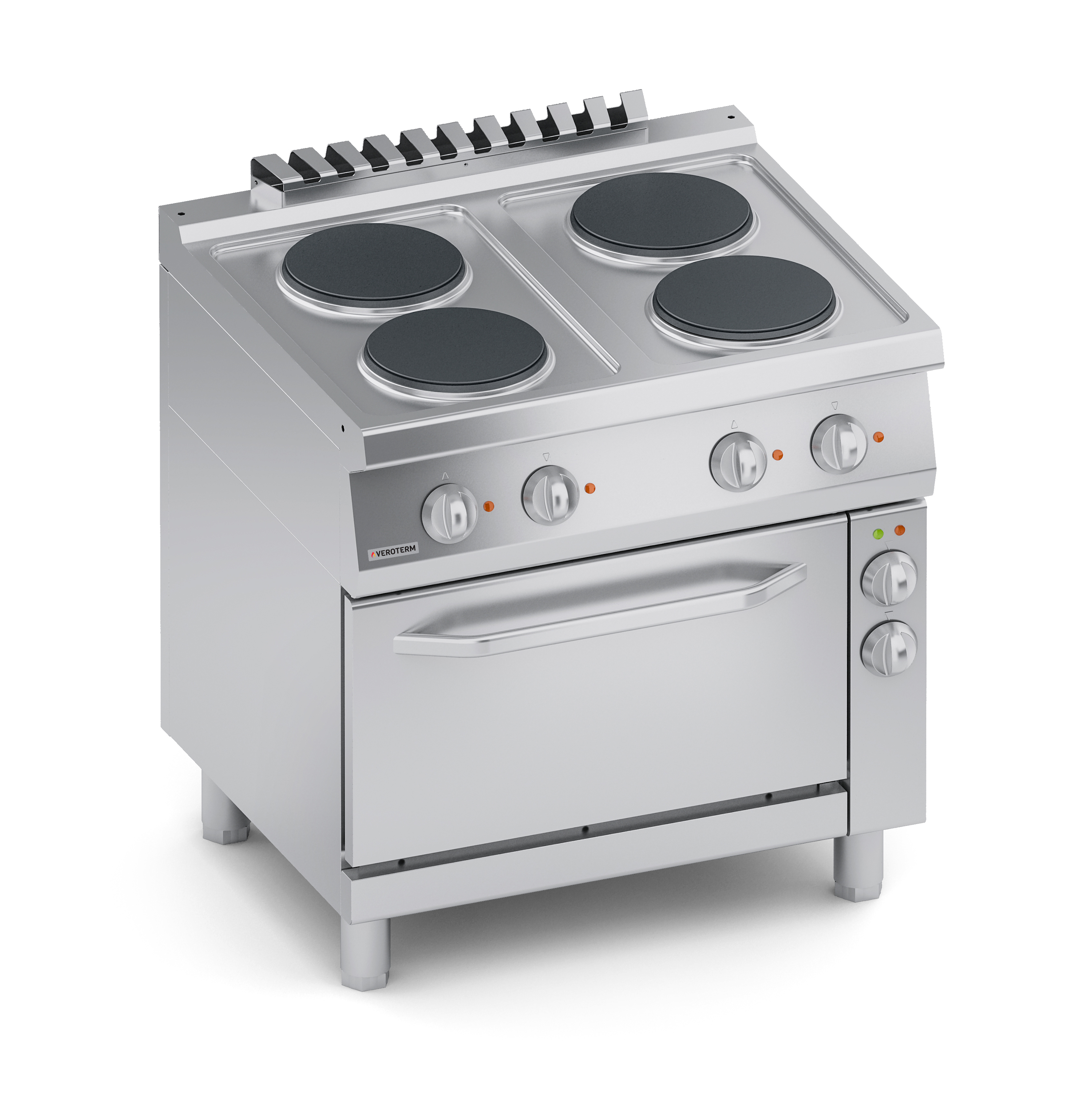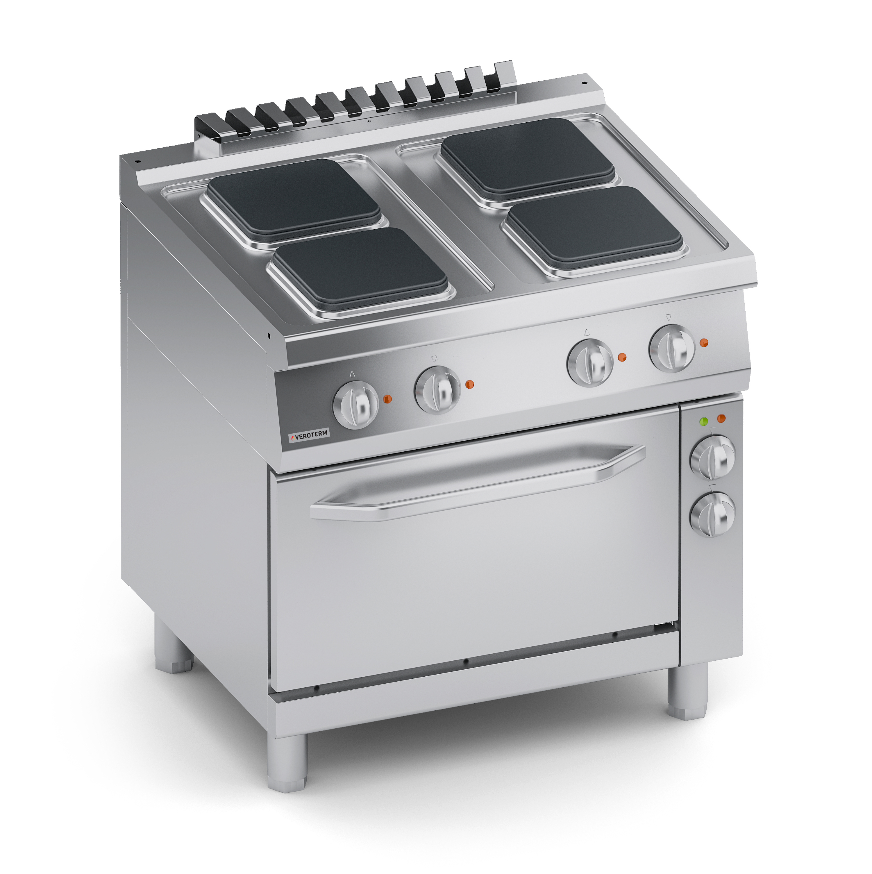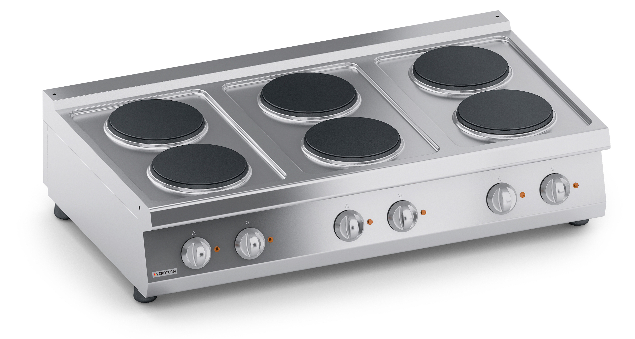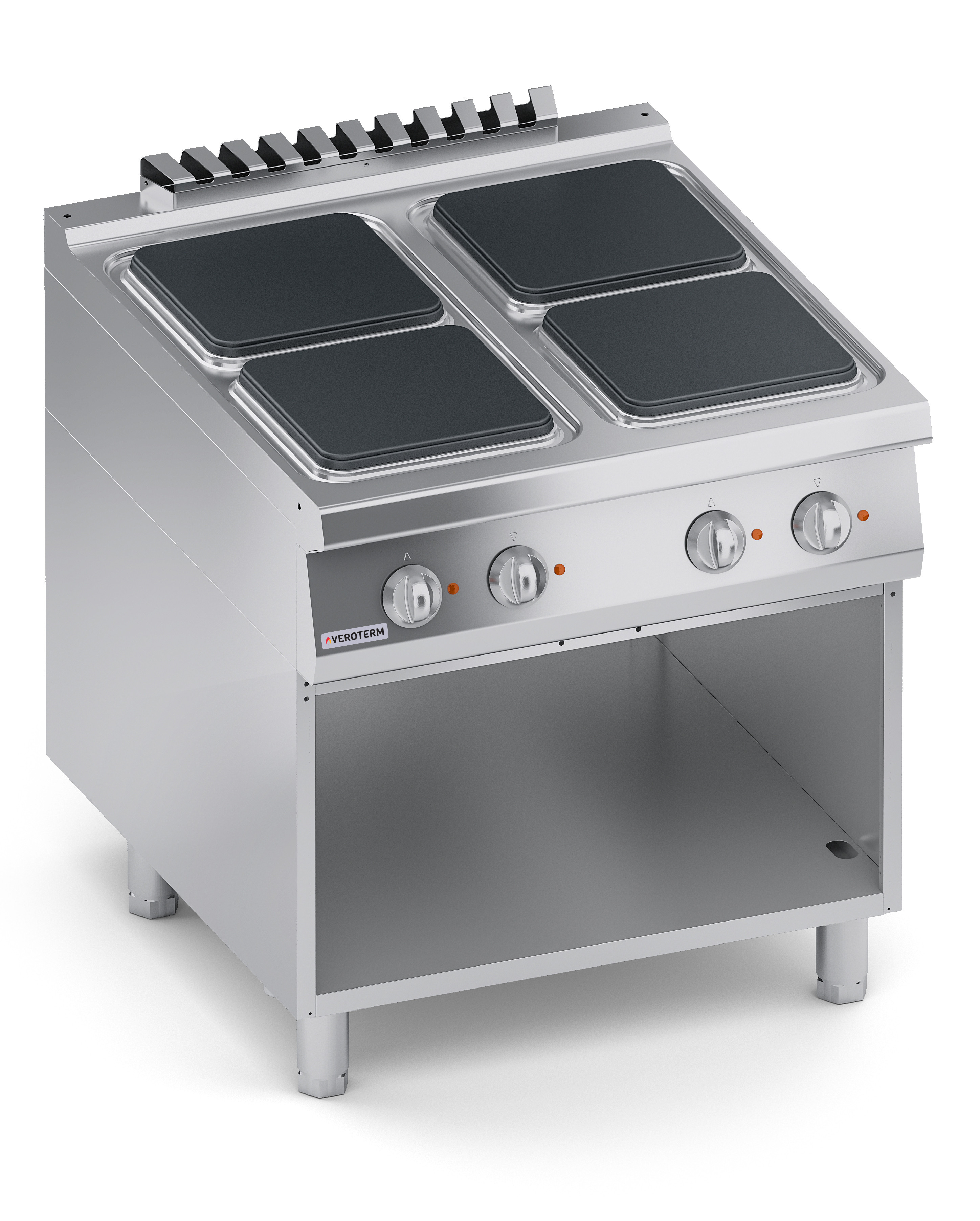 Тепловое оборудование:Ассортимент Veroterm включает в себя оборудование 600, 700 и 900 серий, что дает широкий диапазон возможностей для оснащения профессиональных кухонь от маленьких заведений с простым меню до больших ресторанов, гостиниц и столовых, рассчитанных на обслуживание большого количества посетителей с разнообразным и сложным меню. Плиты VerotermИтальянский бренд Veroterm предлагает широкий ассортимент электрических, газовых и индукционных плит, выполненных из нержавеющей стали, в настольных версиях, на нейтральных подставках и с духовыми шкафами. Плиты представлены в 600, 700 и 900 сериях, со сплошными, секционными квадратными или круглыми конфорками.