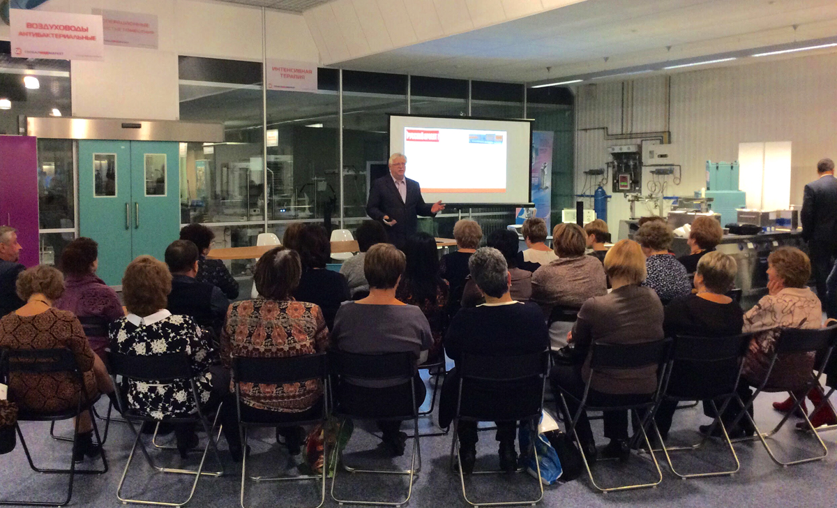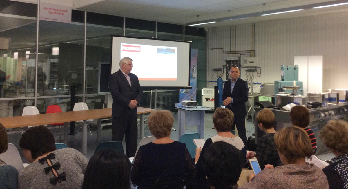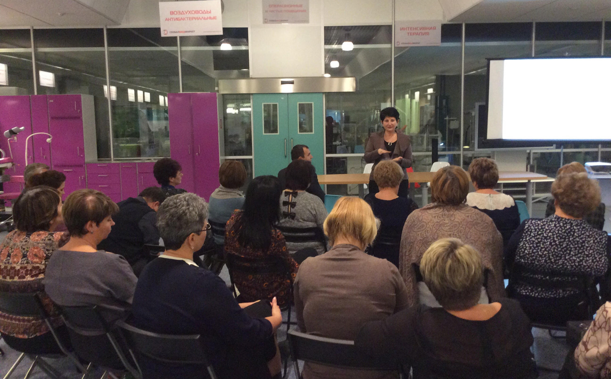 В шоу-руме компании "ГлобалМедМаркет" собрались сотрудники комитета по образованию Солнечногорского района Московской области.